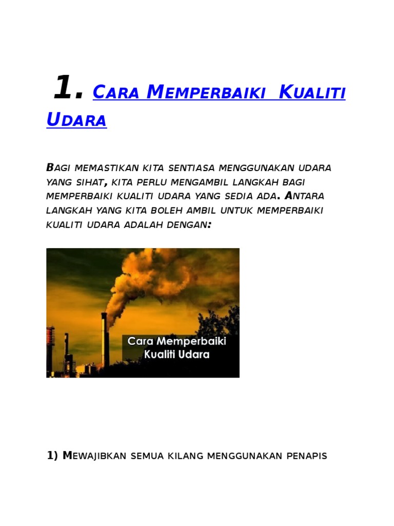Cara Untuk Memperbaiki Kualiti Udara / Kerusakan pada solenoid valve/ katup otomatis.. Menghilangkan debu serta kotoran yg melekat. Air pollution index (api) merupakan suatu kaedah umum dan termudah untuk menghuraikan status kualiti udara khususnya di china, hong kong dan malaysia. Colok flashdisk pada komputer atau laptop. Memori sd tidak ke baca di hp apapun. (a) mewajibkan semua kilang menggunakan penapis asap.