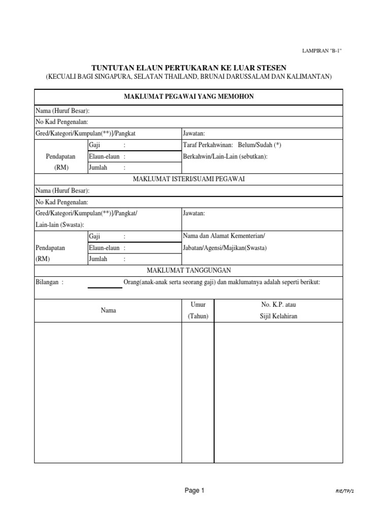 Dengan segala hormatnya dikemukakan borang permohonan elaun pertukaran luar stesen bagi pegawai seperti berikut untuk kelulusan. Pejabat kewangan negeri perak prosedur tuntutan 3 2.0 pastikan borang kenyataan tuntutan elaun pertukaran ke luar stesen yang betul digunakan dan dokumen sokongan disertakan. Bertugas rasmi di dalam negara. Gunakan pertukaran mata wang untuk membuat ringgit malaysia. Beliau telah bertukar dengan membawa keluarga bersama.